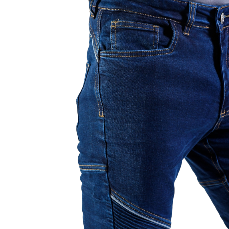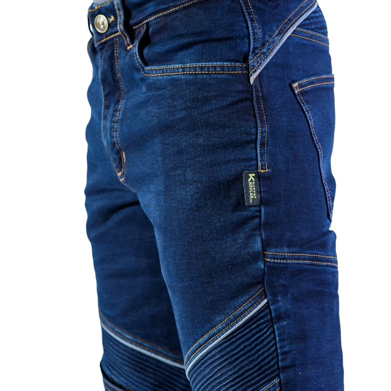 Kevlar® reinforced denim at the knees and hips.