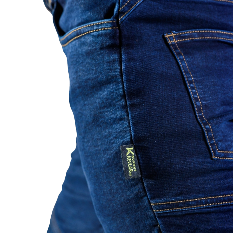 - Durable Kevlar®-reinforced denim with wear-resistant stitching.