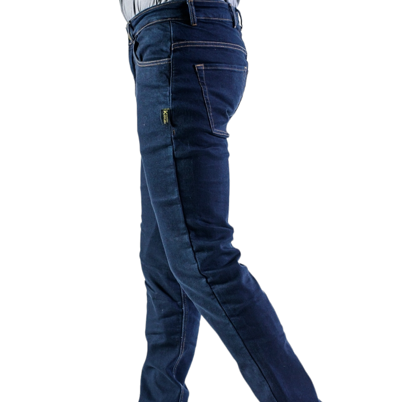 Durable Kevlar®-reinforced denim with wear-resistant stitching.