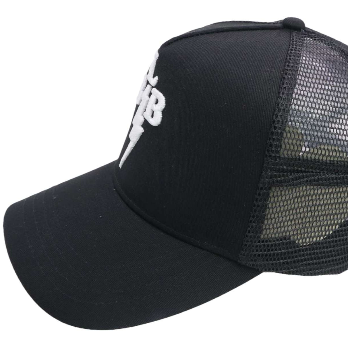 Gorra negra con un rayo blanco en el frente, un diseño limpio y moderno para motociclistas minimalistas.